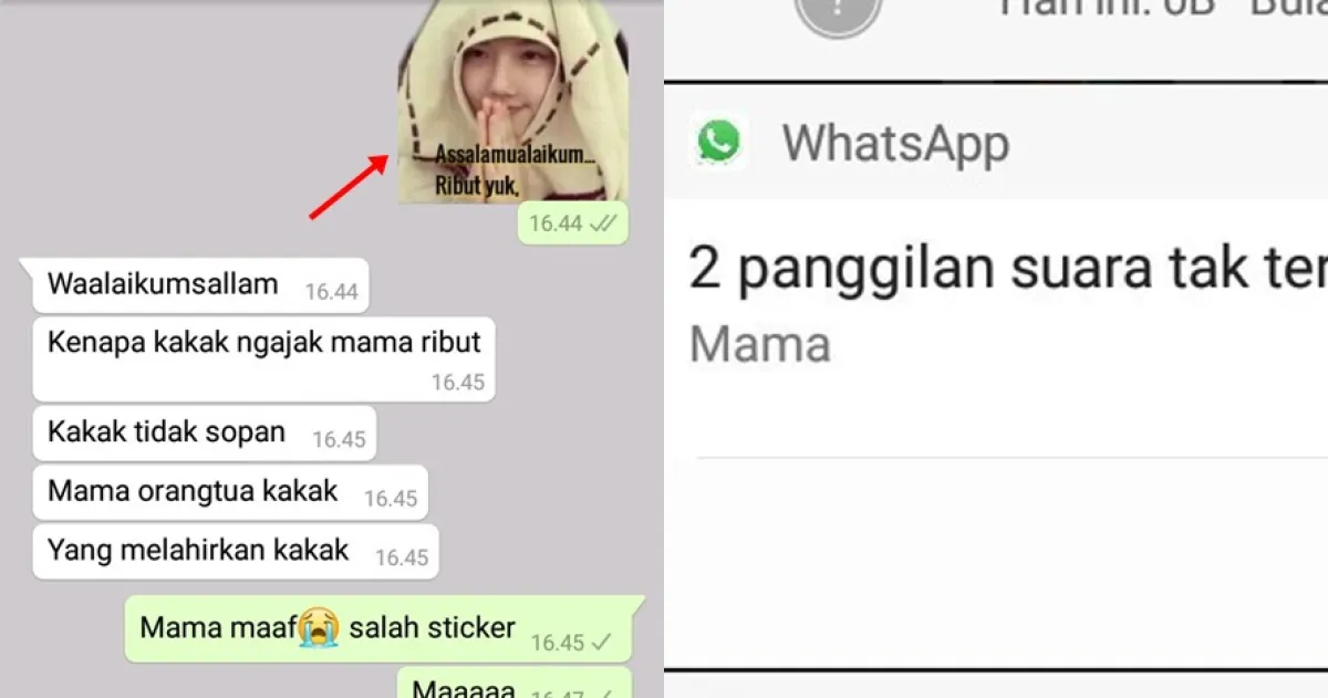Pemilik akun Twitter @kimyohanjj kena imbasnya. Berniat chat sang mama dengan stiker, namun cewek ini malah salah melakukan pemilihan stikernya. Seperti terlihat pada tangkapan layar chat yang diunggah, ia malah mengirim stiker yang bertuliskan, "Assalamualaikum... Ribut yuk," ke mamanya.