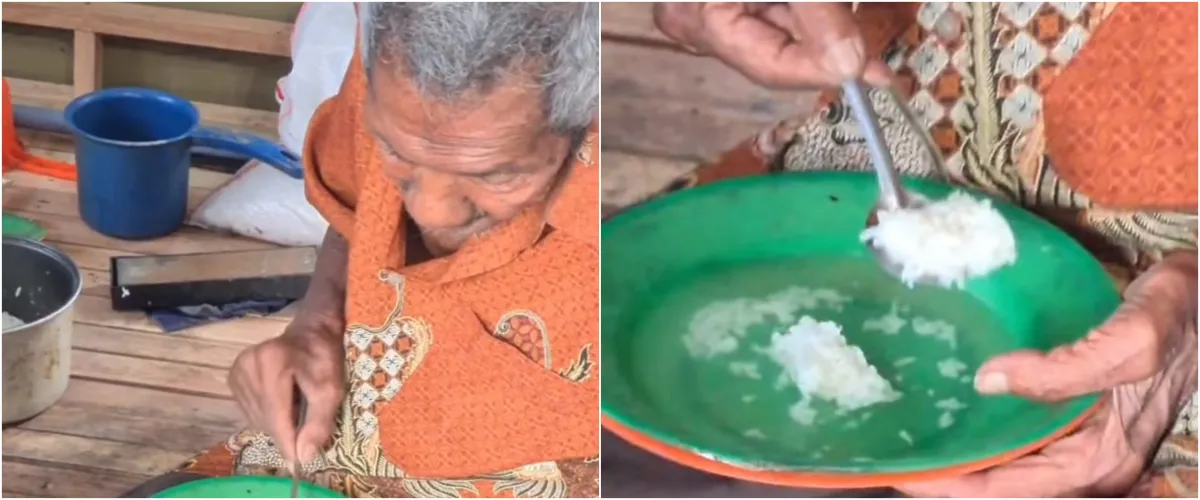 "Miris banget, kakek hanya bisa makan nasi dicampur air saja. Itu sudah bikin kenyang kakek nak," tertulis di caption.