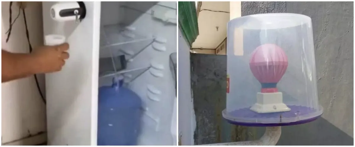 1. Saking pengen air minum dingin, orang ini sampai membuat lubang pada pada samping kulkas untuk kemudian dipasang selang dan kran air yang mengalir dari galon dalam kulkas.