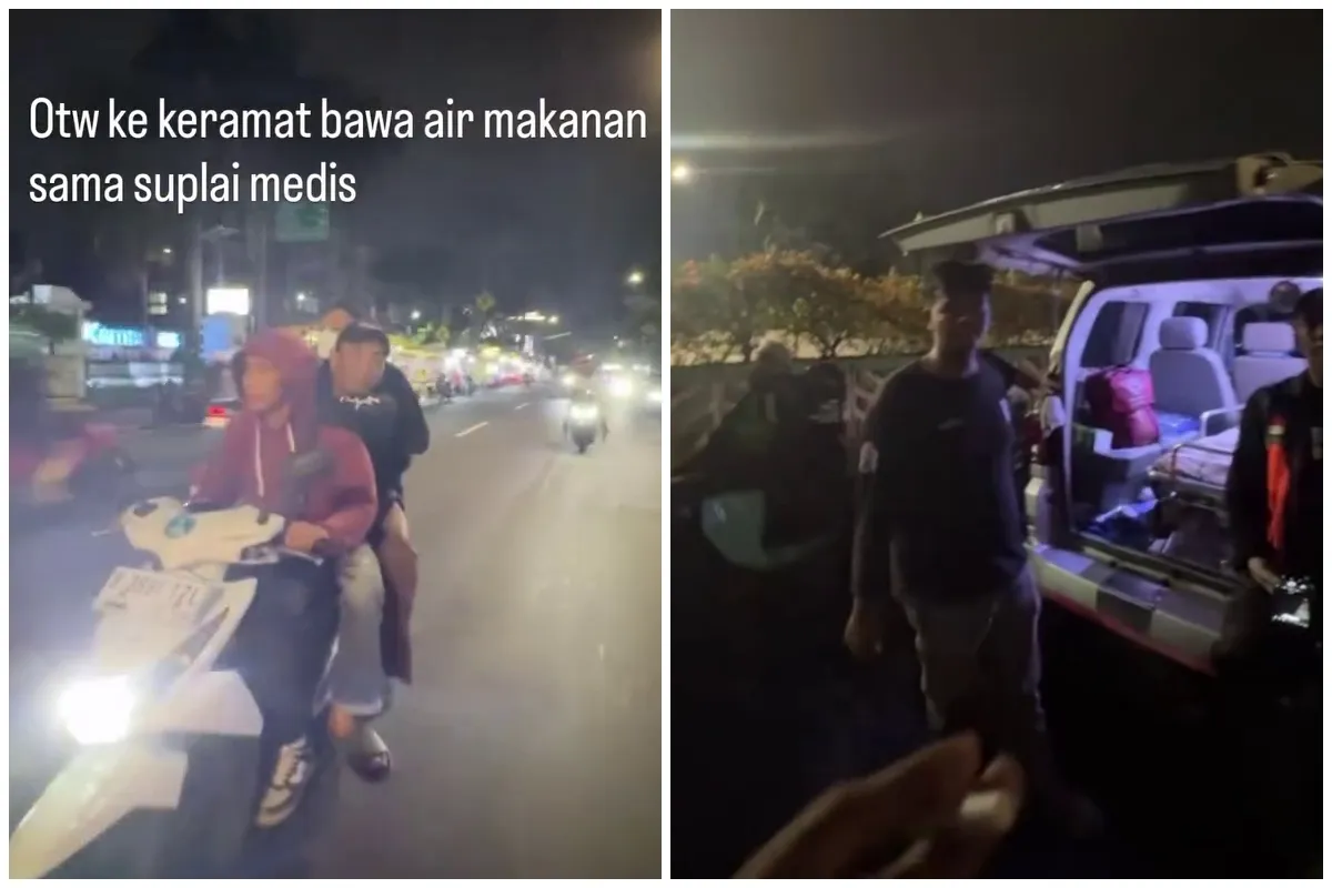7. Dalam sebuah rekaman, Young Lex tampak mengendarai motor bersama temannya menuju lokasi. Mereka membawa bantuan langsung ke titik yang dibutuhkan.