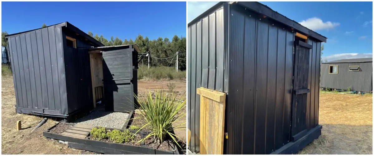 6. Pelapis dalamnya merupakan kayu, sementara dinding luarnya adalah seng. Kamar mandi ini juga dilengkapi dengan ventilasi agar sirkulasi udaranya baik.