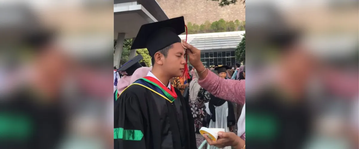 Berbicara soal dandan wisuda untuk pria, ada sebuah video yang baru-baru ini mengusik jagat maya. Diunggah pengguna TikTok @achmadfadillah891. Dalam video singkat itu, terlihat seorang wisudawan berada di tengah kerumunan wisuda lainnya. Diketahui, pria itu tengah bersama keluarganya. Dalam video tersebut, dia berdiri di hadapan sang ibu yang tampak semangat mendadaninya.