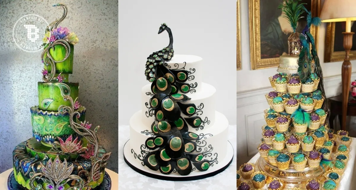 14. Nggak berlapis-lapis, tapi hiasan di kue ini bikin pecinta burung merak girang abis.
